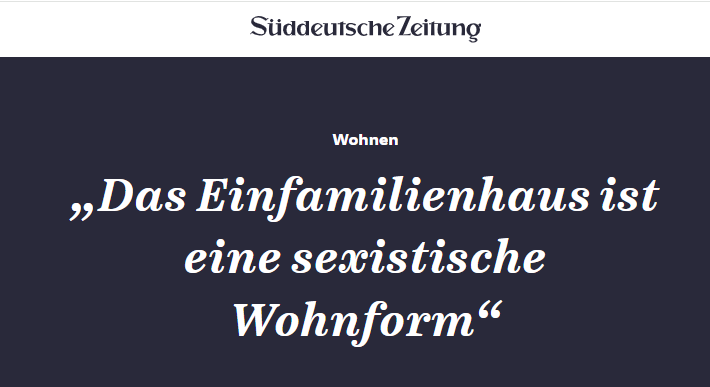 Die Süddeutsche Zeitung (SZ) ist bekannt dafür, Kritikern des Einfamilienhauses eine breite Plattform zu bieten. So sorgte im Februar der Artikel „Oma soll umziehen“, in dem ältere Menschen dazu aufgerufen wurden, ihre großen und aus Sicht des Autors für sie unnützen Häuser zu verlassen, um Platz für neue Generationen zu schaffen, für Aufmerksamkeit.